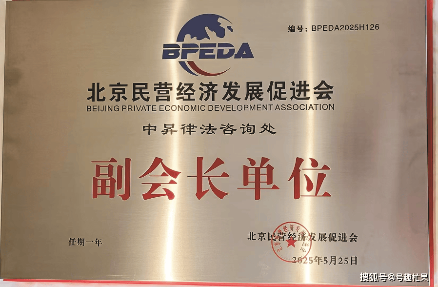 2025年中昇律法咨询处获任北京民营经济发展促进副会长单位。